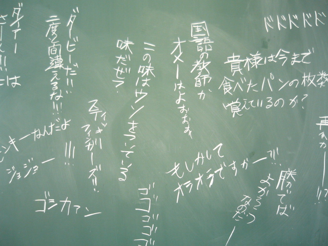 黒板にジョジョ台詞を書いてました。
